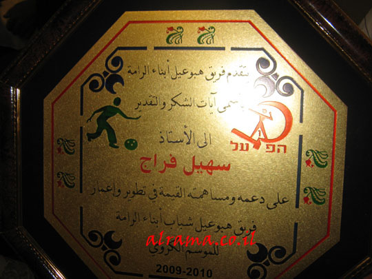 | حفل تكريم لاعبي فريق هبوعيل ابناء الرامه |