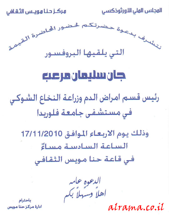 كل احترام لابناء الرامه. نحن نرفع راسنا في امثال بروف, جان وغيره من ابناء الرامه التي هي مركز الثقافة والعلم والحضاره. شكرا لك على المحاضره الشيقه والقيمه والى الامام يا بروف, جان . |