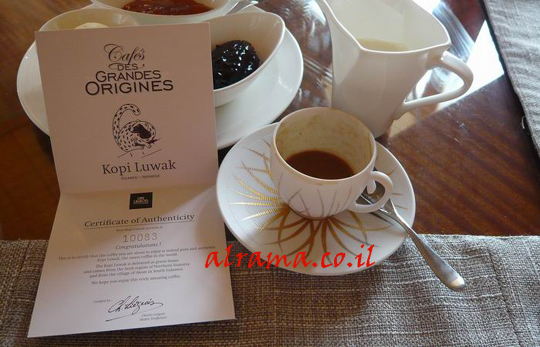 ودائماً تقدم في أفخم الفنادق .. ولا يتم تقديمها إلا بشهادة ثقة معها .. يعني شهادة تفيد بأن هذه القهوة نوعها ( كوبي لواك ) أصلية وغير مخلوطة بأنواع أخرى عادية.