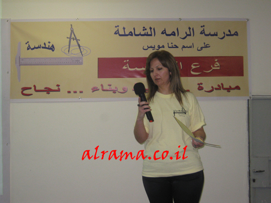 وكانت كلمة للمفتش الدكتور كمال شوفانية في تشجيع وشرح مختصر عن أهمية الهندسة في جميع المجالات. وكان في النهاية شرح عن مضمون الفرع شرحت فيه المعلمة كميليا أسعد عن عدد الوحدات , البونوس وعن أهمية هذا المجال كذلك عن العلامات العالية التي يحصل عليها الطلاب ومرافتهم حتى شهادة بجروت تكنولوجية كاملة.